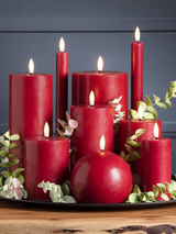 Enjoy the warm glow of candlelight without any fear of fire or mess with this elegant set of two Red Luxlite LED Taper Candles. Designed in Sweden, these all-wax candles feature a realistic, pulsating 3D LED flame, each with a run time of over 75 hours. Features an 8 hour timer. Powered by 2 x AAA batteries, these safe, ambience-adding taper candles make an understated complement to any type of decor, either on their own or paired with other LED candles.